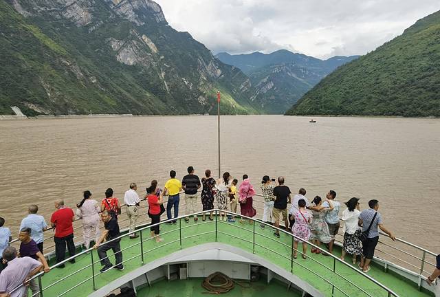 邮轮即将驶进巫峡,大家都在船头欣赏巫峡的美景。