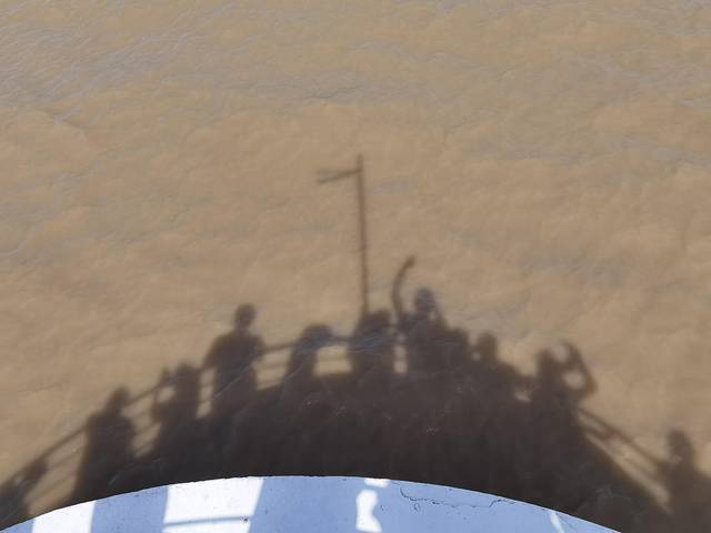 由于洪峰过境,大量泥土和垃圾被冲到江上,长江变成了“黄河”。