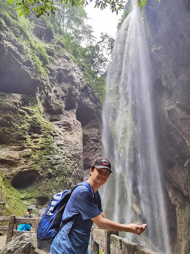 在地缝沿着唯一的一条小路往前走约一个小时就可以到达地缝的出口,不需要走回头路。走出地缝之后今天的旅程也行将结束了,大巴车送我们回到市区,我们在八一路小吃街附近下了车,品尝完重庆的小吃之后便回到酒店休息了。明天我们就要离开重庆开始三峡之旅,也是我们两父子本次35天中国游的最后一个大景点了。