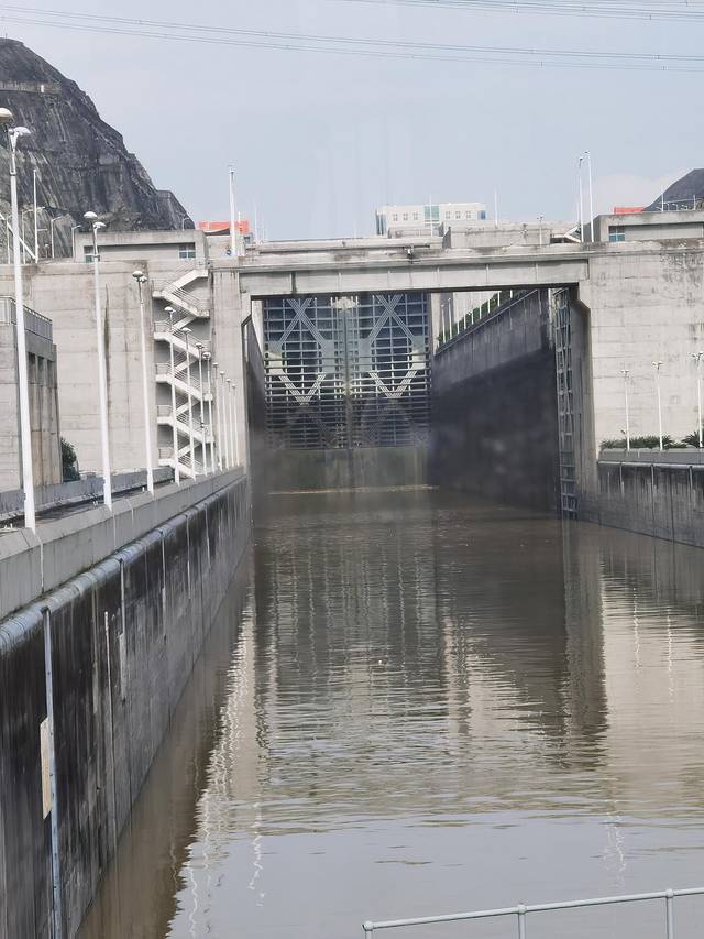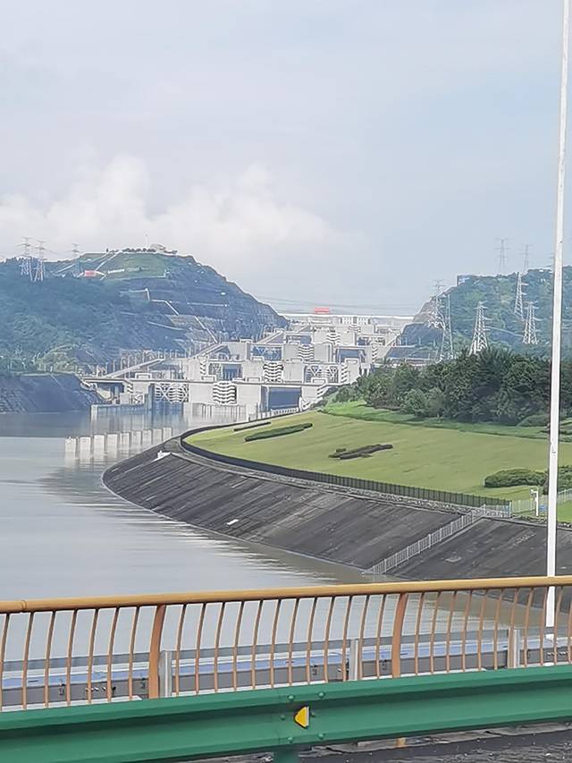 大坝入口处的安保很严格,身份证或户口本,和旅行团的证明缺一不可,如果忘带的话就只能到此为止了。我们进了大坝之后不能靠近观看,只能在观景台远远观看大坝的全景和泄洪的情形。