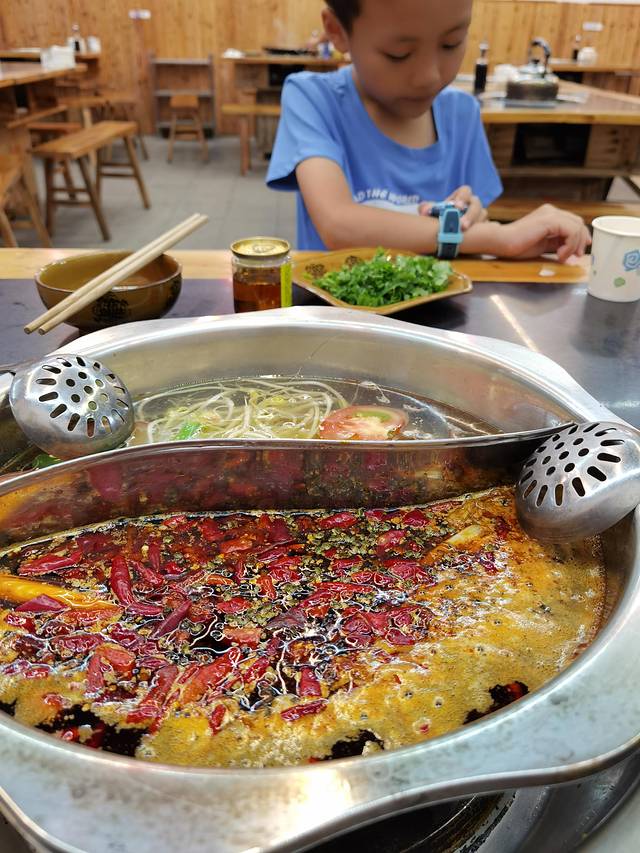 这家火锅店味道不错的,当时索道对岸的马路由于涨水封了,所以没什么人来,我们几乎包场了。