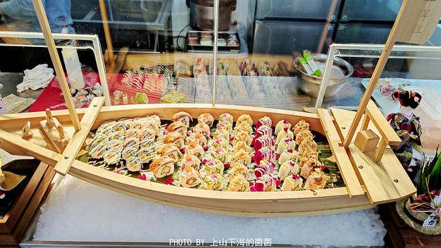 寿司&刺身:寿司种类很多,寿司船的摆盘也很精致!刺身主要有吞拿鱼、三文鱼、红希鲮、黄希鲮、章鱼这几款,都是超级新鲜,反正我是反反复复拿了好多次,哈哈!