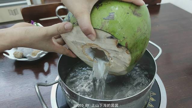 三个椰子:店员当场将三个超新鲜的椰子打开,把所有的椰子水都倒出来做汤底,百分百货真价实!原汁原味的椰子精华才能算得上健康清润又养颜,锅底滚开瞬间芳香四溢!