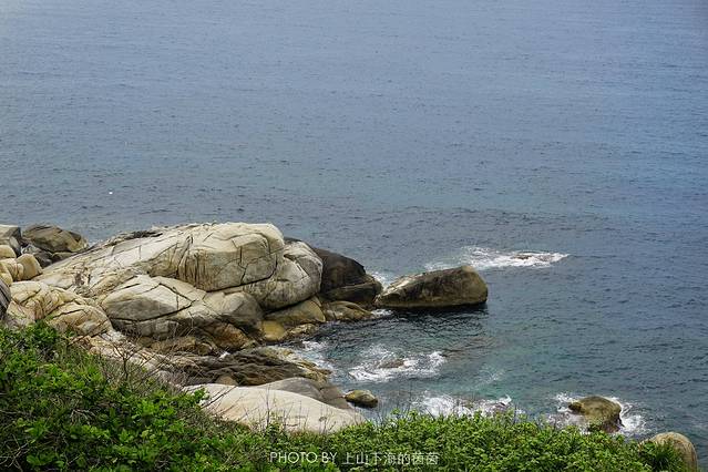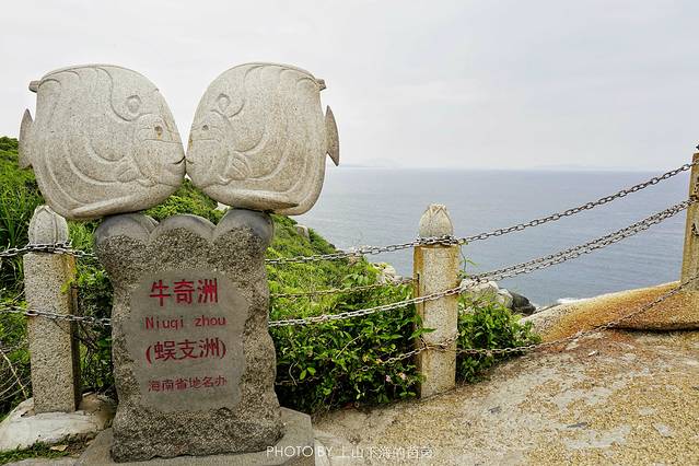 从妈祖庙步行至观日岩并不远,站在日光岩上极目远眺浩瀚的南中国海,面朝大海心情极舒畅!【牛奇洲】蜈支洲岛的别名,包括“蜈虫支洲岛”、“牛奇洲岛”、“牛淇洲岛”、“古崎岛”。【金龟探海】观日岩左下方有一块天然巨石与一只巨大的海龟相当相似,龟头和龟甲都相当清晰,最神奇的是在整块巨石的左前方有一露出海面的条状长型岩石,当海浪袭来时仿佛海龟在划水,动态逼真。