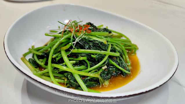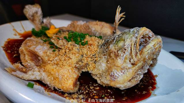 糖豉汁香蒜黄鱼(¥98):黄鱼之前也吃过不少,一般都是采用清蒸或者油炸的烹饪方式,“稍微秀”的出品颇有创意,不仅鱼头和鱼尾两头上翘有点“松鼠鱼”的即视感,鲜嫩酥香的鱼皮鱼肉和酸甜可口的糖豉汁更是绝配!