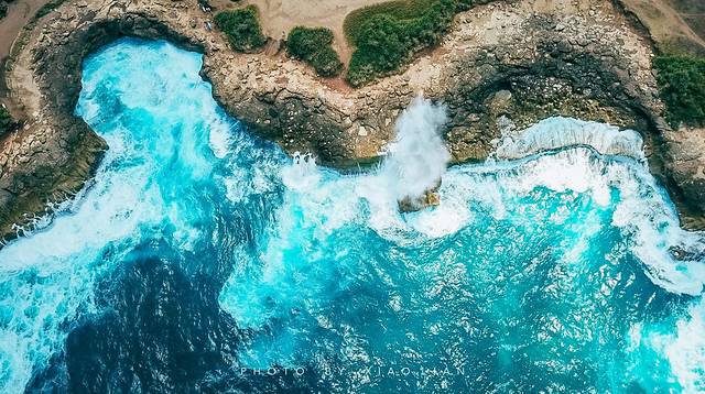 恶魔之泪周围的海在航拍视角下极美。