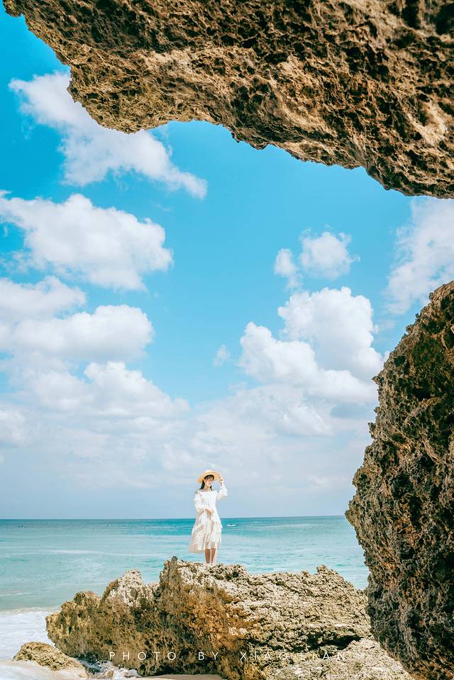 若是退潮,沙滩上由岩石形成的一个个凹陷处都像是天然浴缸,在这儿拍照也是很有意思的。