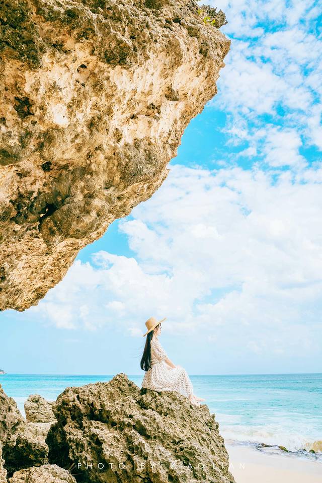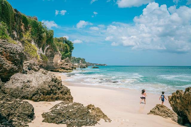 Pantai Tegal Beach绝不是单调的沙滩,这里散落着许多岩石,而沙滩背靠的大岩石给这里增添了一份阴凉,若是带上浴巾躺在这儿吹海风纳凉也是极舒服的。