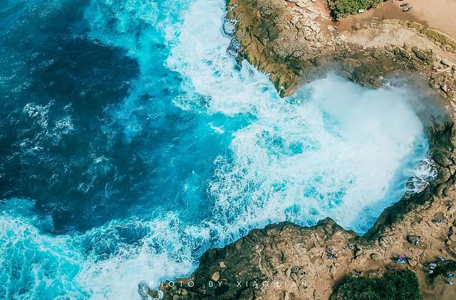 而航拍视角下也可以看到此处被称为“恶魔的眼泪”的原因,这里的岩石有两块凹进去的部分,当海浪不断涌入又退去,这两个凹陷处就仿佛是一个不断涌出泪水的眼眶,仔细看着还真是那么回事~