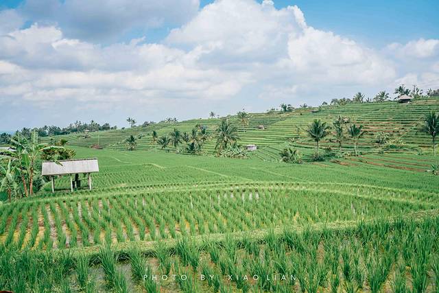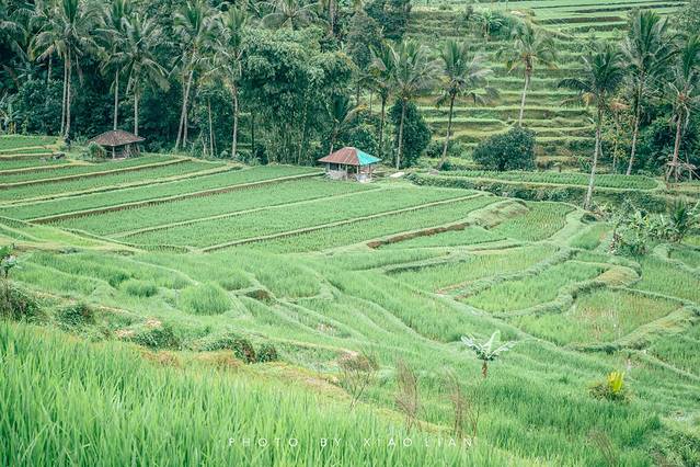 不同于国内梯田给我们“壮观、壮阔”的印象, 巴厘岛 的梯田是娟秀的,在有规则排列的稻田间点缀着茂密的椰林,小亭子,偶尔还会发现几只躲在稻田里的小鸭子,稻 田中 间有供游人徒步的步道。