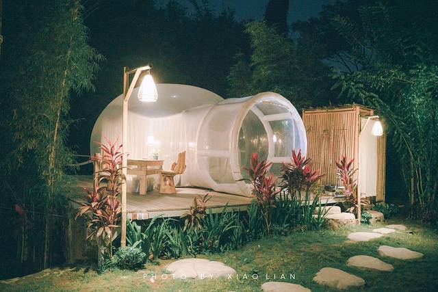 晚上躺在泡泡屋内听着水流声,那感觉还真是独特。当然,在这儿睡一夜还是会感觉有点潮湿的。