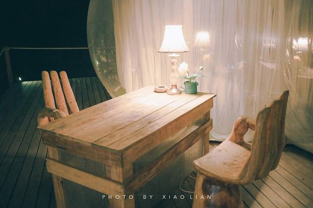 我和琦琦正在屋外坐着的时候,住另一间泡泡屋的两个住客过来用英语问我们是否可以拍我们这间屋子,因为他们那边的泡泡屋被竹林遮挡不好取景,我们回答说当然可以拍。