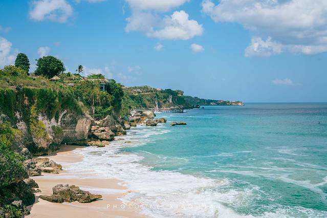 Pantai Tegal Beach在一座悬崖下,站在高处眺望可以看到这儿的海岸线是绵长的, 和龙 目岛一样, 巴厘岛 的南部也有着许多独特的的地形。