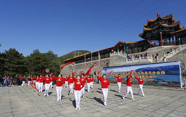 时至重阳节,到了一年一度的好季节,天气晴好,蟒山公园锣鼓喧天热闹非凡,原来这里正在举行九九重阳节登山活动和健身大会,真是运气。