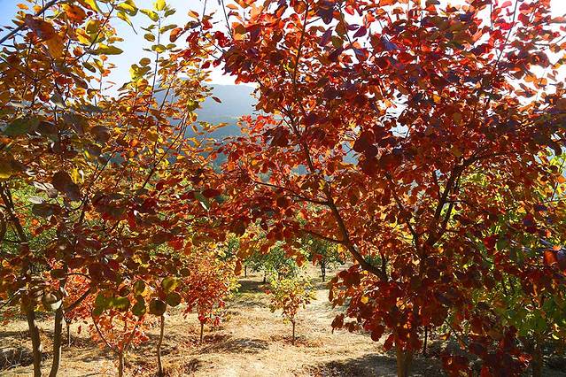 蟒山有一大片彩叶林,不同颜色的树叶在阳光的照射下熠熠生辉,这个季节真美,吸着郊区清新的空气,赏着满眼的红叶,心情是无比的舒畅。