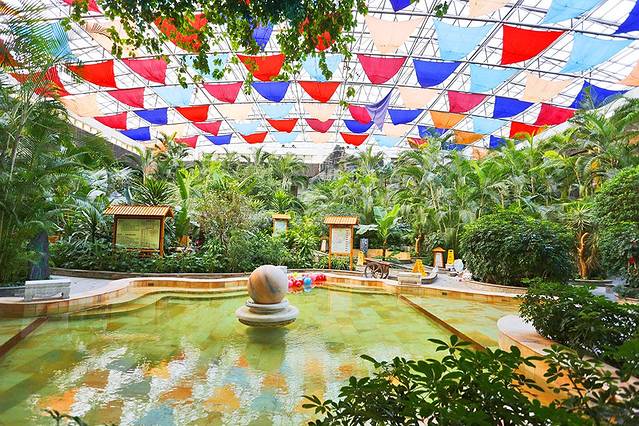 走进温泉就像来到了一处大森林,各种热带树生机盎然,小溪石径、飞瀑假山;芳草吐绿、古木参天;24小时全天开放,入住客房可无限次进入尊享。一处处隐藏在树丛中的汤池,多种药浴有紫红色的、黄色的、淡绿色的等等任您选,还有动态水疗区强劲的喷淋、冲击,我不停的在这些汤池之间切换,来感受它们不同的魅力特色,真是舒畅。