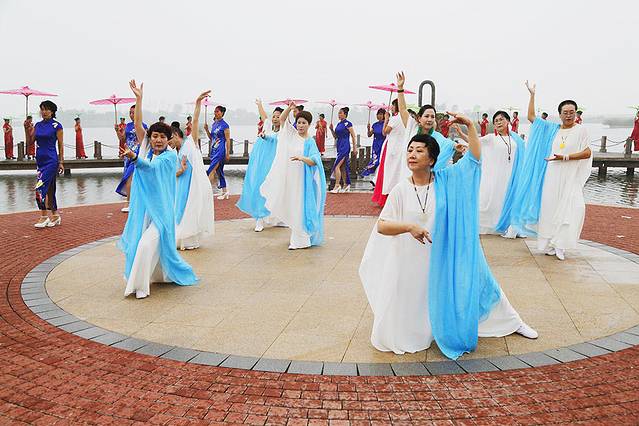 在充满灵气的同心岛上,上演着一幕幕引人入胜的表演,一群年过半百仍活跃在舞台上的美丽女人,给人带来多彩的身姿,令人艳羡。