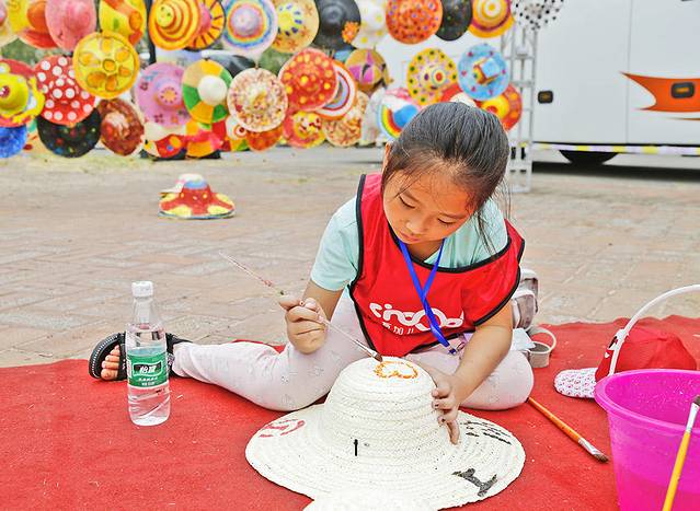 一群天真可爱的美术班的孩子们,一大早开始在草帽上展开思绪画起了画。而后赠与嘉宾展示他们天真烂漫的画作,成为一道夏日里亮丽的风景线。