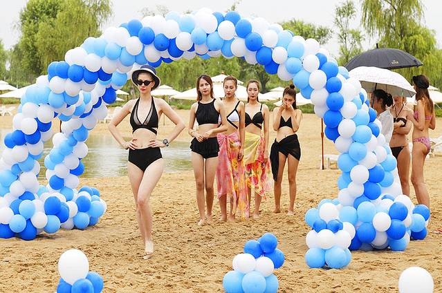 时逢第二届唐山市旅游产业发展大会在曹妃甸会场的多玛乐园遇见一场比基尼大赛,中外亮丽的模特们,在雨中展示自己的靓姿,吸引了人们的视线。