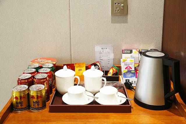 第二晚入住金鼎大酒店,这座酒店装饰的很典雅,茶歇台有免费咖啡、红茶、绿茶,还有收费的易拉宝饮料、方便面等。