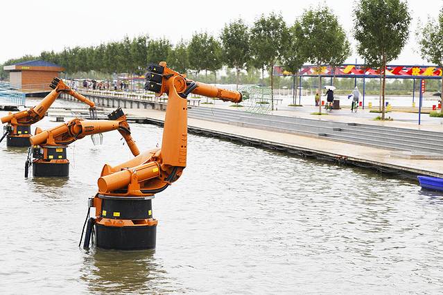 在占地3万平方米的机器人捕鱼表演区里,百川机器人公司自主研发的各种机器人捕鱼表演,以先进的机器视觉和智能算法配合机器人的高速响应,实现机械手抓鱼、机器人空中截鱼、无人机钓鱼以及机器人无钩钓鱼等多种表演形式。总而言之,只要是人能实现的捕鱼方式,这里的机器人都可以做到。是不是很厉害呀?