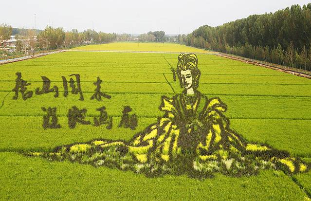 由唐山市爱东农业科技有限公司承建的 稻乡畦园农业观光园,利用色彩及三维等方式打造了神奇美丽的大唐曹妃稻田画,让水稻以艺术的姿态呈现在大家面前,并设有高空观光看台。登上这座观景台高处俯视,我终于看到了相传已久神秘的稻田画,“唐山周末,湿地画廊”,一幅漂亮的曹妃身着唐代服饰守候在稻田,真是美极了,真切的感受到稻田画的壮观及奇妙。
