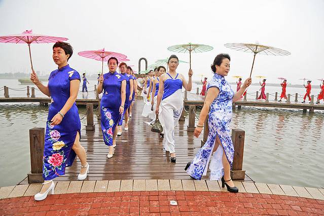 世界旗袍大赛是由中国旗袍协会全球联盟主办的一年一度的国际顶级赛事。没想到,雨中她们打着油纸伞一如既往的迈着优雅的步子,不疾不徐的展示着旗袍的美。