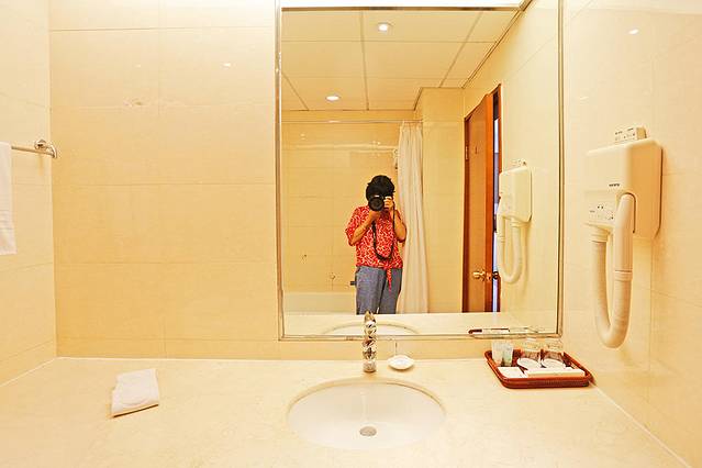 洗漱间有浴缸,一次性洗漱用品齐全,虽然不是豪华,但也是挺干净的。住是一点问题没有。
