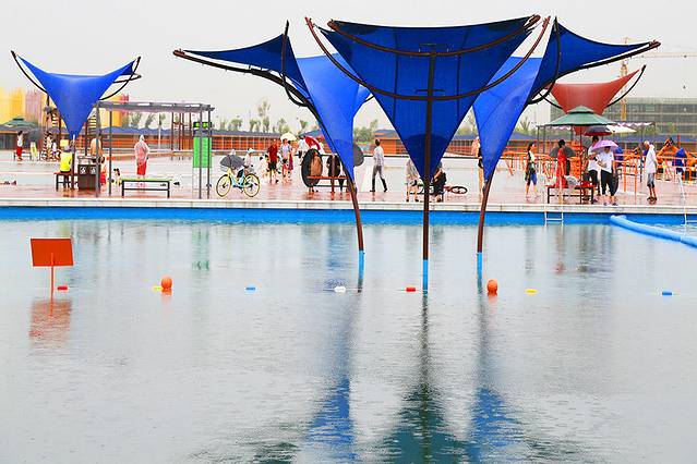 蒙蒙细雨中,曹妃甸的多玛乐园,鸥鸟翔翔,芦苇青青,清波荡漾。虽然景致不错,想着雨天不会有人来玩呢,可是在沙滩水边,扑鱼玩水的游客还是在乐此不彼的玩乐着。我乘乐园的电瓶车转了一圈,看到还是有不少人在玩,所以又步行来到人多的地方,看看是怎么样的乐趣吸引着他们。