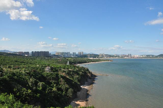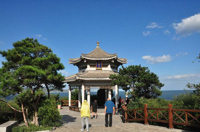 龙回头景观台依山临海,松涛起伏,这里高于海平面近百米,陡峭的悬崖下是浩瀚的大海,眼前是美丽的海岸线,举目远望,葫芦岛海滨浴场清晰可见,在这里能真正体会大海的广阔。