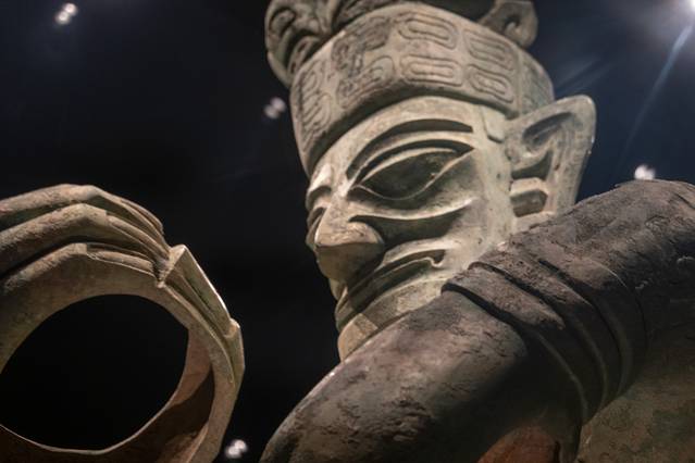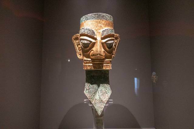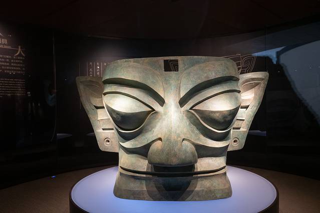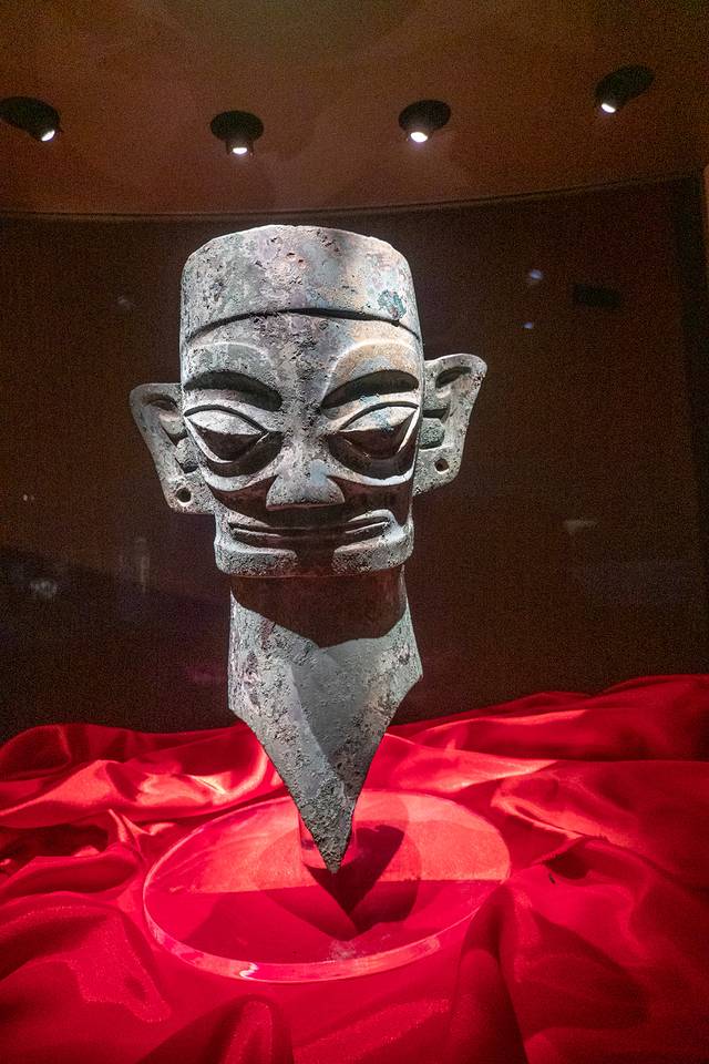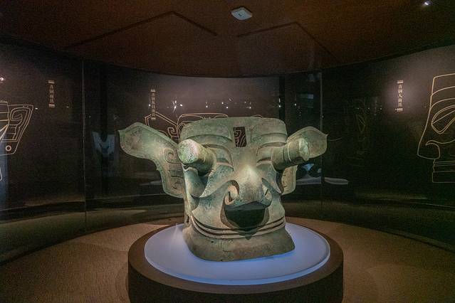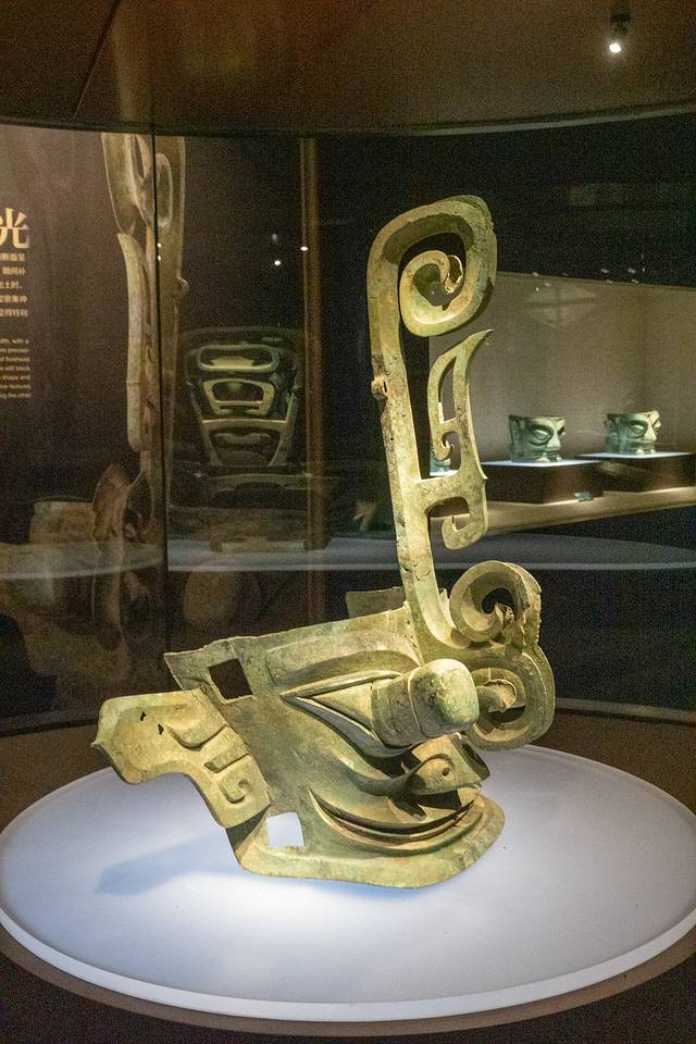 可能神话和传说并不是虚构和虚幻,我相信有神奇的远古时代,也相信神话传说,奇珍异兽没见过并不意味着不存在,也许是进化,也许是绝迹,但这些可能都存在于地球过,在历史的长河里,人类渺小的不过一粒沙子,又为何要否定神话呢?神奇的古蜀国文化,神奇的古代祭祀礼仪,真的引人无限逻想,最神秘的文化,给人无尽的猜想,可能这才是历史的趣味所在。建议大家去之前一定要先看下三星堆和金沙文化的纪录片,预习下功课再去,即便这样在看到摇钱树的一刻,也会惊讶于古人的高超技艺。青铜馆:主要有青铜头像,青铜纵目面具,太阳轮,青铜神鸟等等,一切的一切都在告诉我们信仰的力量,这高超的技艺,神秘的文化实在是太吸引人了。
