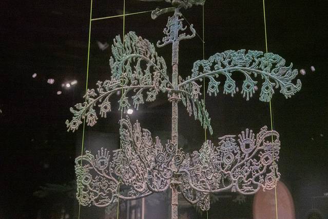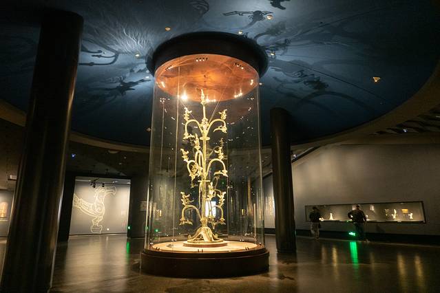 还有非常高大差不多4米高的树,这个上面就有9只金乌,不知道是不是为了纪念后羿射下来的9个太阳呢?