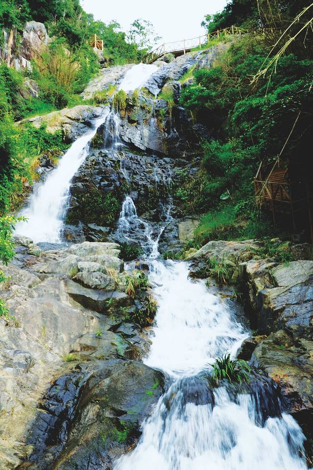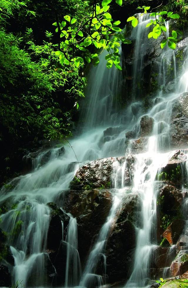 这个时节瀑布的水流虽不是最丰盛的,但踱步经过,仍能感受到细微的水气随风拂过。除却石门溪瀑布,景区中还有九叠泉瀑布、双溪瀑布,亦曲折通幽,景色醉人。