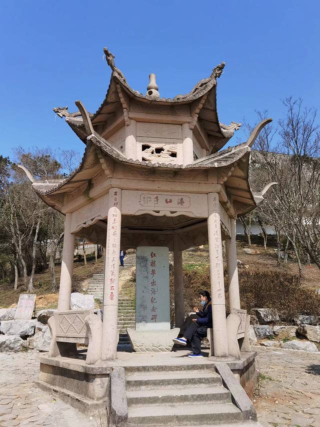 海红亭。海红亭和名著《红楼梦》有关,据记载,清乾隆五十八年(1793),南京王开泰的“寅贰号”船从乍浦港启航抵达长崎,共装载图书67种,其中有《红楼梦》9部18套,这是迄今为止《红楼梦》东渡日本、走向世界的最早记录,后人为了纪念《红楼梦》的走出国门,就在《红楼梦》出海的地方,建了“海红亭”和红楼石刻。
