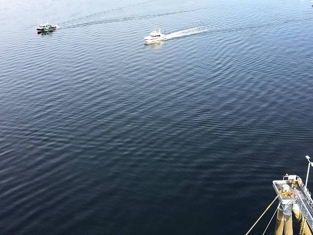 现在才知道远处的小快艇是为我们这个大家伙邮轮导航的。