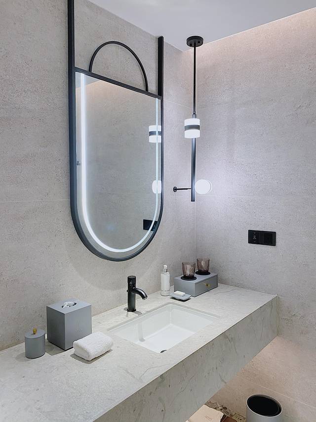 房间内以灰,黑,白色的大地色主色调为主,无不透露出浓浓的法式风情,在房间内的阳台就可以看到万花筒艺术馆,“艺术话万物,灵感绘生活”是酒店的美学宗旨,整个酒店也是以红砖和流畅曲线的设计风格呈现。