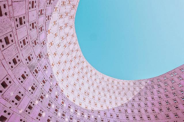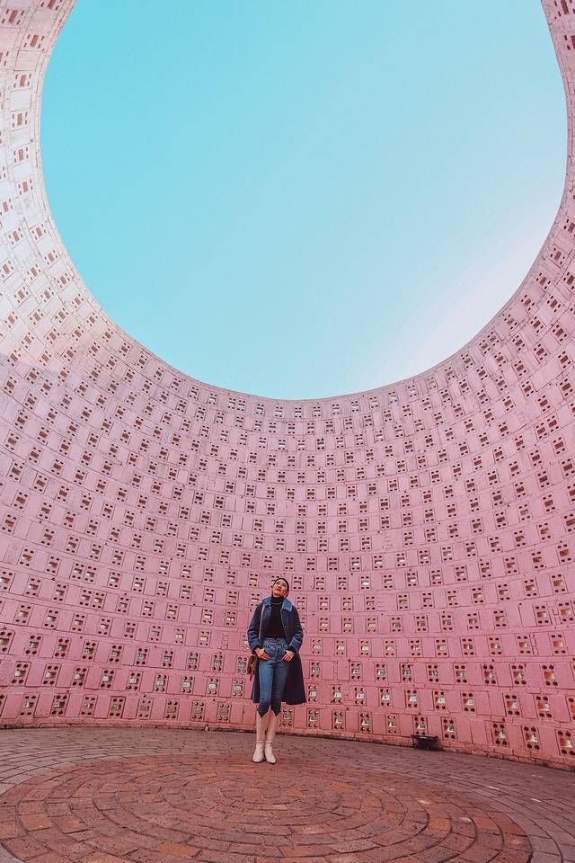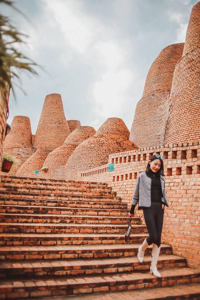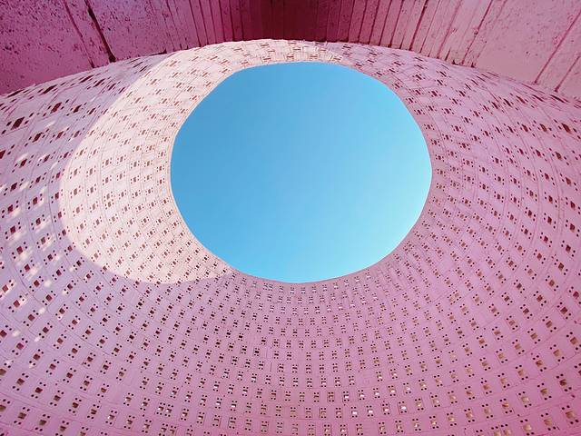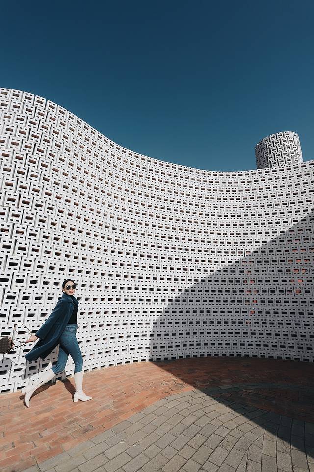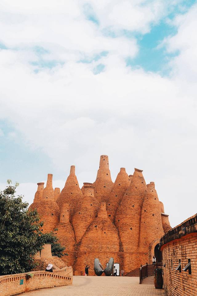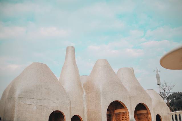 出来美术馆后就可以看到罗旭大师的各种艺术建筑了,你能想象出,这么多形态迥异的建筑没有用一点钢筋,都是用转垒出来的吗?这里梦幻浪漫又充满童趣,绚丽的地中海配色,充满了西方浪漫主义色彩,可以感受到艺术家大胆的设计想象力。阳光透过白色的,粉色的,橘色的五孔空心砖,呈现出不同的光影效果,让你放佛置身于摩洛哥,每个角度拍照都非常好看!