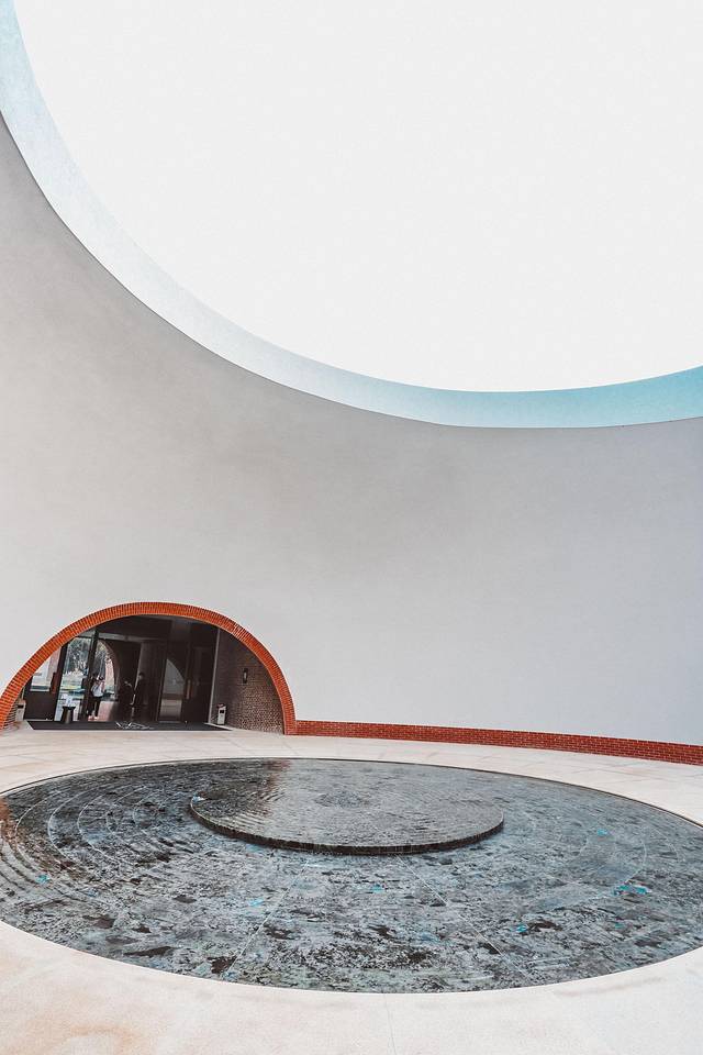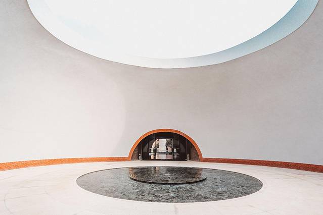 摆渡车在景区内经过各种新奇古怪的建筑后,美憬阁的真容就显露出来啦!最喜欢的还是步入大堂的这个半圆建筑,进入里面,回音壁这个设计让中心的水流声更加空灵,阳光从上面圆形的露顶透下,人天合一。为每一位住客营造郑重的欢迎仪式感。美憬阁是雅高集团旗下的品牌,在中国第一家是在长白山,弥勒是第二家。