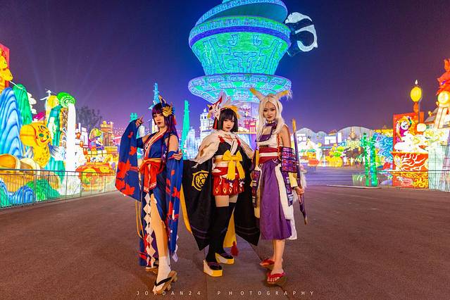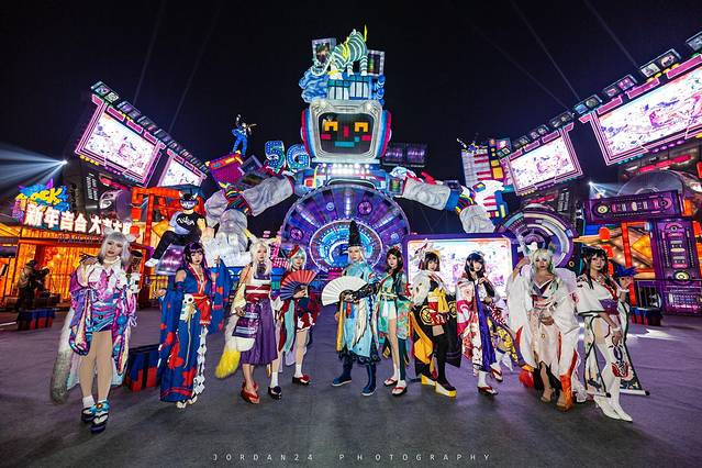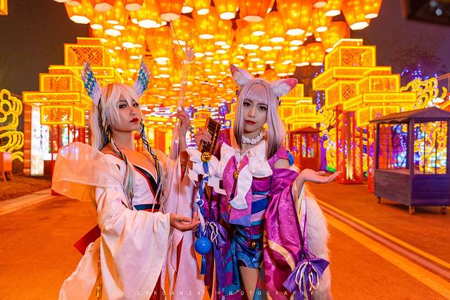 “国潮风韵”和“世界之光”分立彩灯公园出入口的两侧,进则观“国潮”灯,出则品“世界”灯。今天灯会会有很多游戏的coser小姐姐小哥哥们和我们一起逛灯会破次元跨年,你看她们正在国潮灯/世界灯主题区进行表演呢,我们去看看吧!