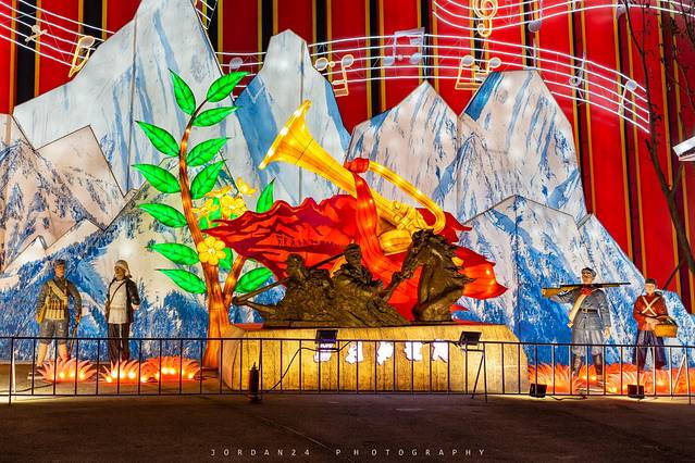 “百年辉煌”灯组群选取了中国共产党建党100年中代表性的建筑、人物、事件,如1921年的红船、1935年遵义会议、1960~1970两弹一星、2009年神州飞天等,打造正派庄严的鸿篇巨制。
