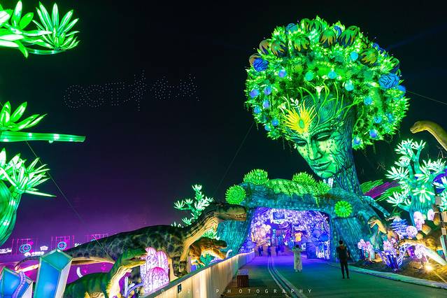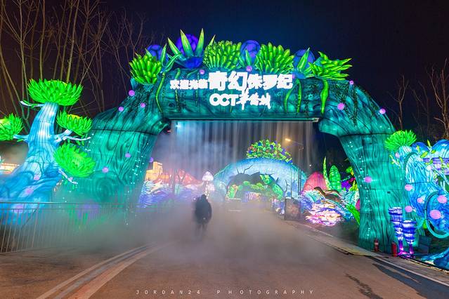 “奇幻侏罗纪”灯组全面还原恐龙时代,结合奇幻雨林场景,创造生命之树主题,惟妙惟肖。结合“声光动触嗅”全新的五感体验方式,就像在演电影一样。
