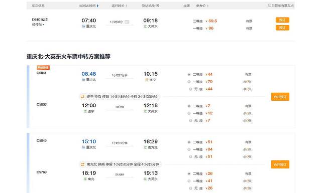 这里要说明下,重庆到大英是有直达的高铁,但是大英回重庆,一般都是要遂宁中转一下的,中转时间在50分左右,可以出站吃个简餐,我们定的18:40那班般,价格只要59元/人。