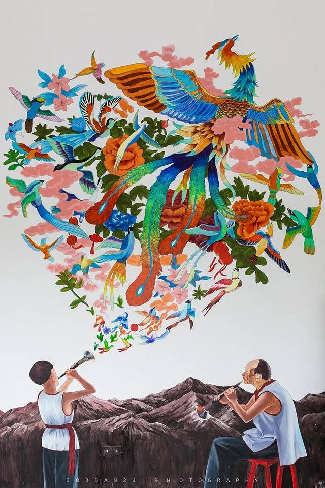 綦江农民版画源于明清年间的木板年画,先在木板上雕刻出图画,再采用人工拓印而成的纯手工之作,作品构图明快,色彩艳丽,蜚声海内外,是重庆市非物质文化遗产项目,綦江被命名为农民版画之乡。