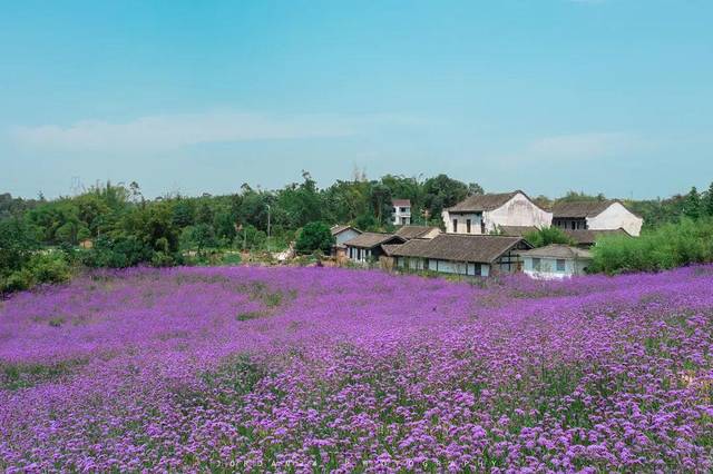 秋季来临,虽然许多花儿已慢慢凋谢,马鞭草却依然绽放,当我远远望去就像“法国普罗旺斯”花海。万灵古镇这里可是有30多亩哟。