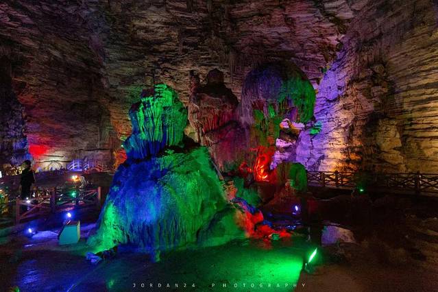而这一片石林“漏斗”所指的方向,是龙缸的地下暗河。如果你来了这里,记得站在钟乳石旁,和记录了地球几十万年变迁的远古地质合一个影。四舍五入,也算是见证过地球的发展了。