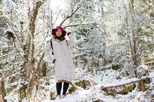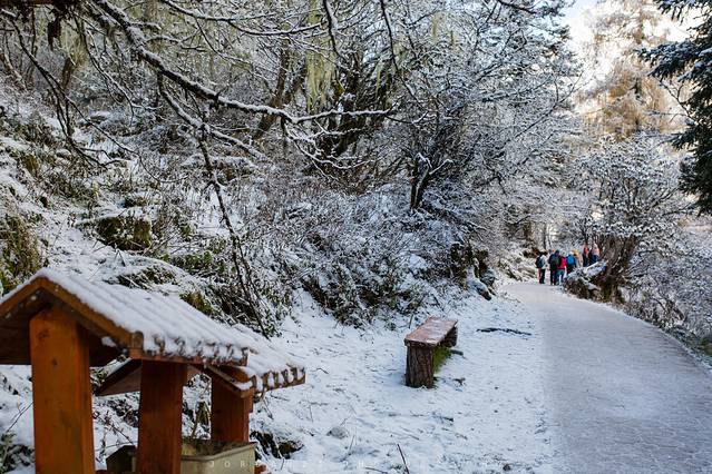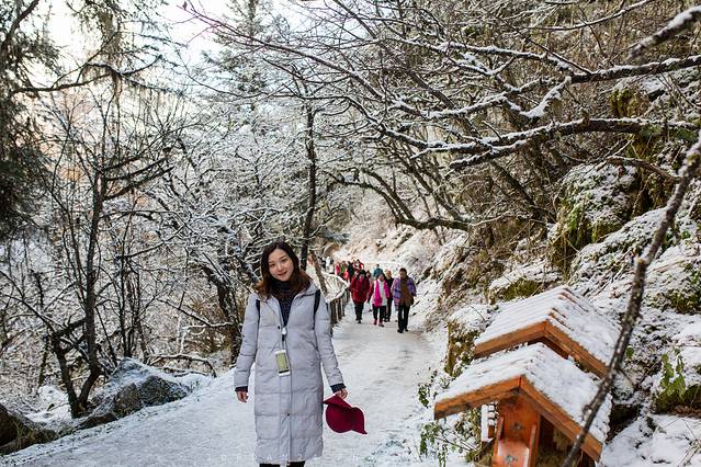 早上气温低,大巴开到半山便到处都是银装素裹,我有点小小失望……因为我是来看彩林的。