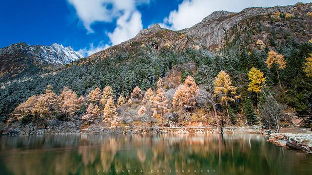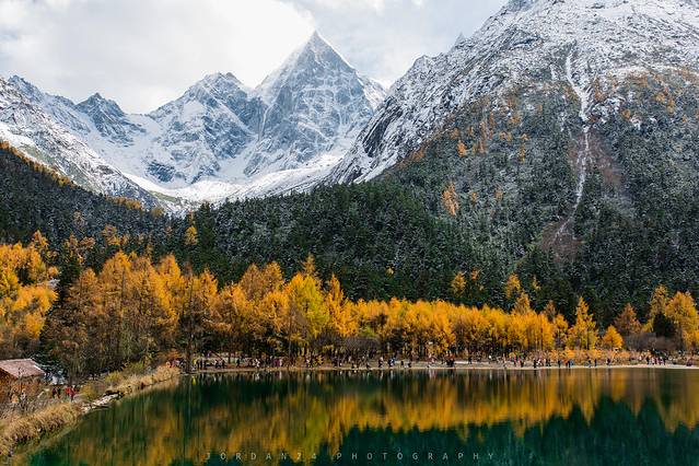 这里十一月就已秋雪纷飞,但在绿意尚未褪去之时,又一抹金色又悄然布满了山谷,彩林更是将这里妆点得格外绚烂美丽。早上还银装素裹,中午一晃太阳便脱去洁白的外衣显露出,满山的金黄,这就是离重庆最近的“童话世界”——毕棚沟