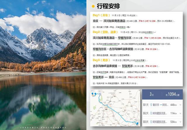 考虑到只有周末两天时间,我们便做了以上的规划,周五下午出发,住宿“汶川新城”其实可以直接开到景区附近的,考虑到晚上开车风险大,就在汶川找了快捷酒店休息,明天一早进景区。
