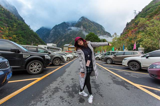 沿途一直是环山路,我们能隔着车窗看到前方的大雪山。车辆行驶大概20多分钟到达景区,考虑到早上是顺光适合拍人像,我们就准备先步行上山,座车下山,但最后才知道这是个错误的决定。