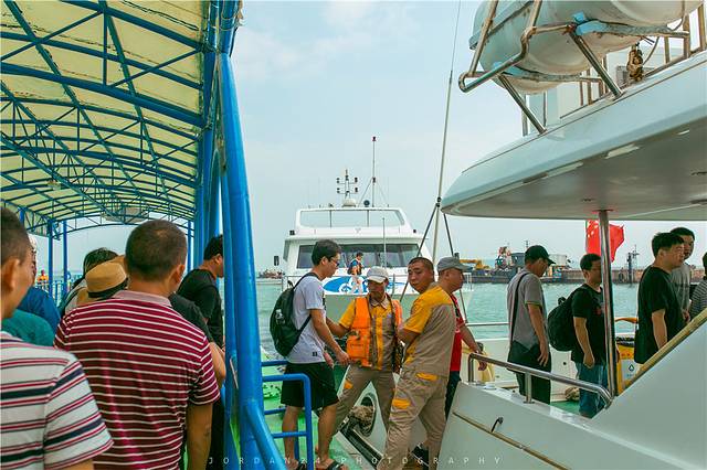 为了安全,码头和船之间有专门的人员接送,避免掉海里
